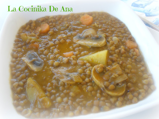 Hola Ana! A mi las lentejas me encantan! Anoto algunas notas de tu versión que me parece genial! Y le pongo muchas verduras, pero los champis nunca los había puesto...las especias elegidas me parecen un toque con resultado de 10.